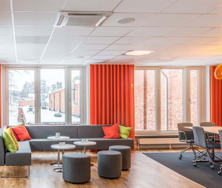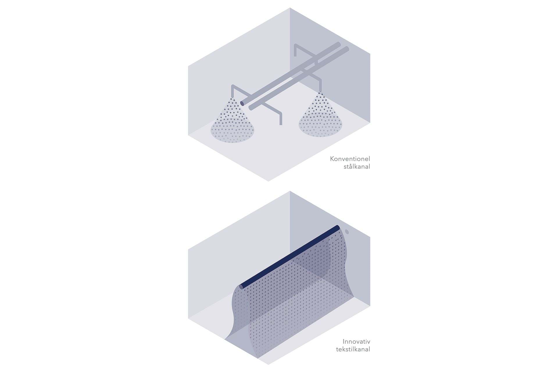 Som den eneste producent i verden tilbyder vi specialfremstillede tekstiler fra eget væveri. Vores materialer er udviklet udelukkende til luftfordeling. Med garanti for ensartet luftgennemgang, ingen krymp efter vask, farveægthed og ikke mindst størst mulig støvbæreevne (Dust Holding Capacity). Vi tilbyder flere flotte farver, hvor to primære materialer er Cradle to Cradle-godkendte.