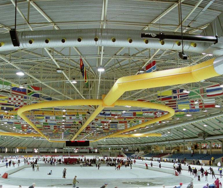 Tekstilbaseret ventilation sikrer et godt indeklima med en jævn og trækfri luftfordeling. Se eksempler herunder.