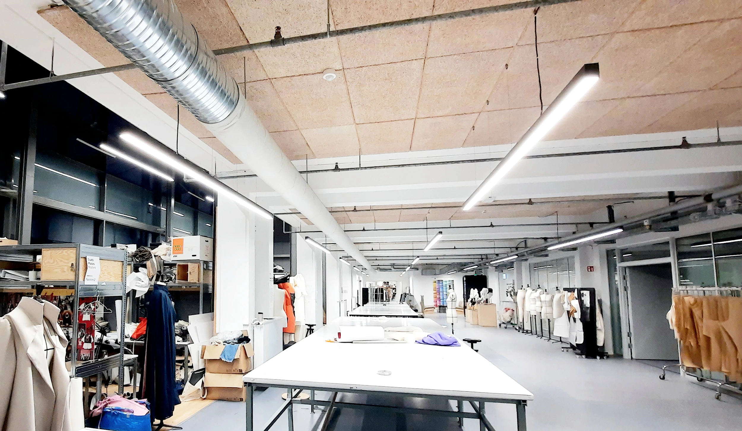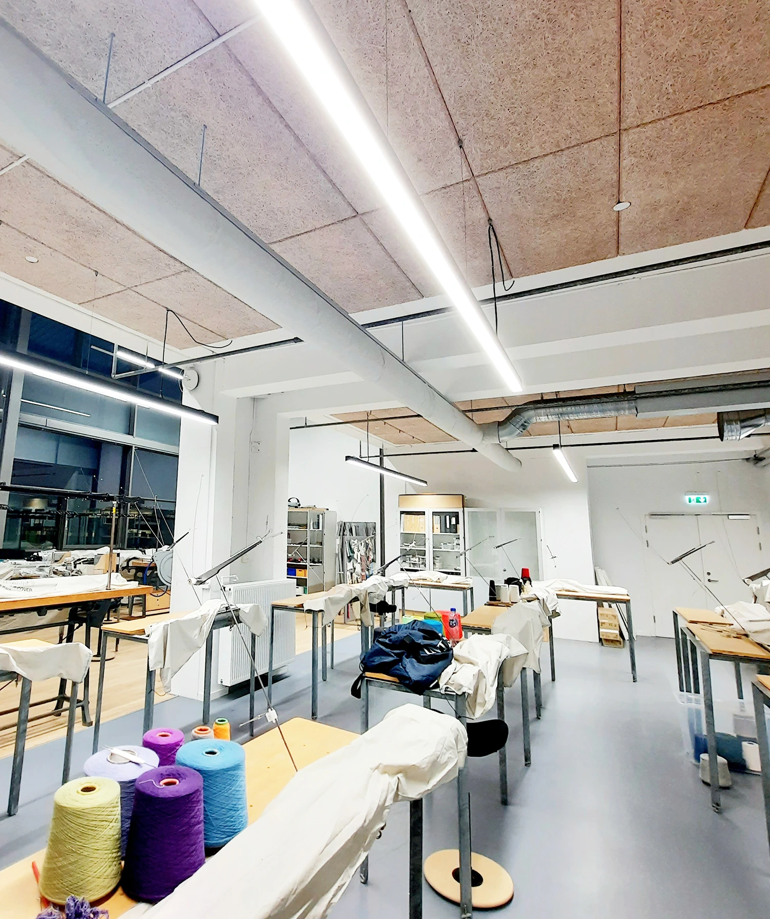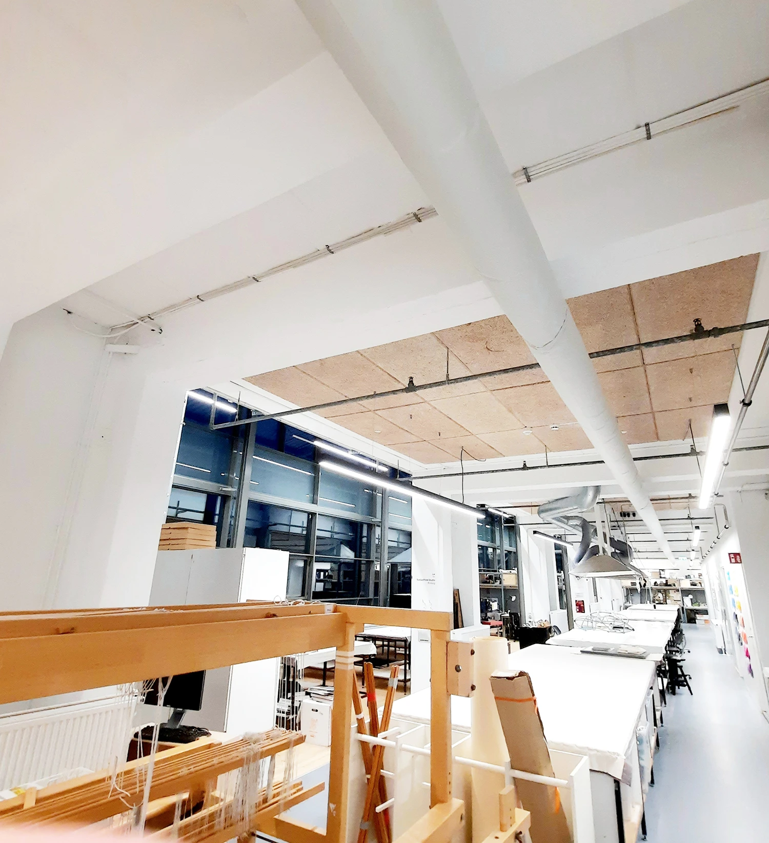 I forbindelse med, at Designskolen Kolding har gennemgået en større renovering af skolens bygninger, har et af projekterne været at optimere og udskifte store dele af skolens ventilationssystem. I den forbindelse har vores kunde Bravida i Kolding stået for ventilationsentreprisen og i et tæt samarbejde med KE Fibertec installeret tekstilbaserede løsninger i skolens nye, flotte kantine og i de fleste øvrige undervisningsfaciliteter. Det er lige fra lokaler, hvor der anvendes maskiner til de kreative opgaver og dermed har behov for et højt luftskifte, til større, åbne lokaler, hvor der arbejdes med tekstiler og papirmaterialer til de kreative opgaver.
