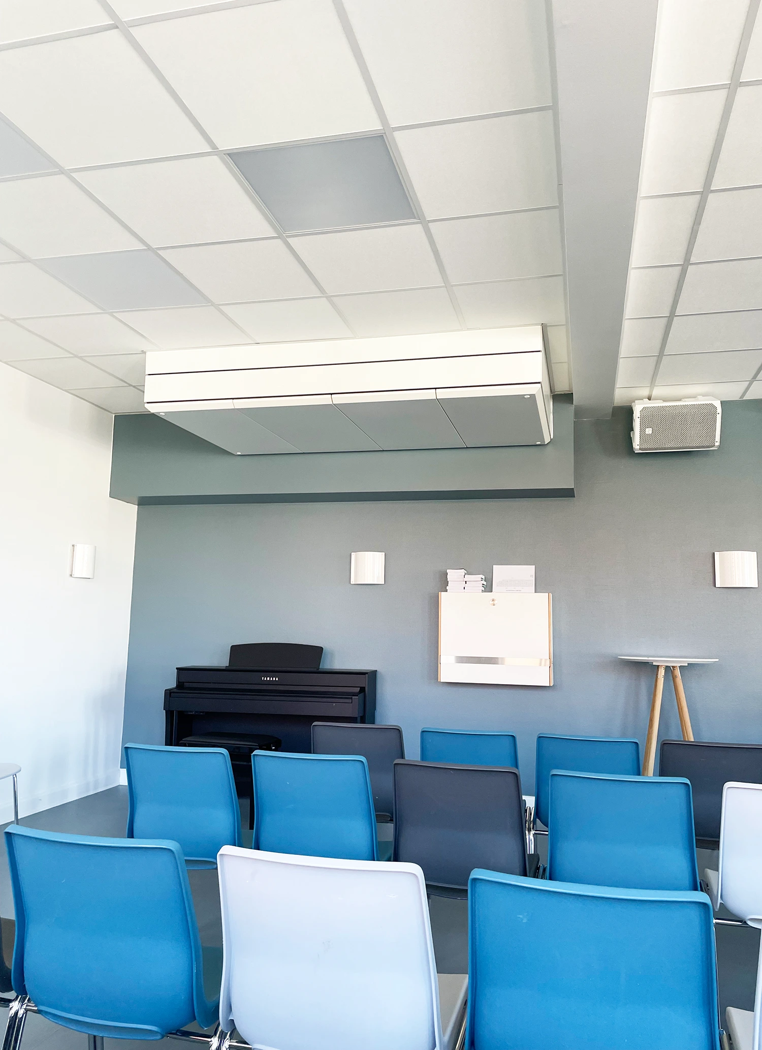 I et rum med varierende personbelastning er det vigtigt, at ventilationen kan levere tilstrækkelig luftmængde uden at skabe generende luftstrømme. FBS-panelets store, aktive overflade sikrer en jævn og rolig luftfordeling, som understøtter både komfort og koncentration – selv når rummet er fuldt besat.