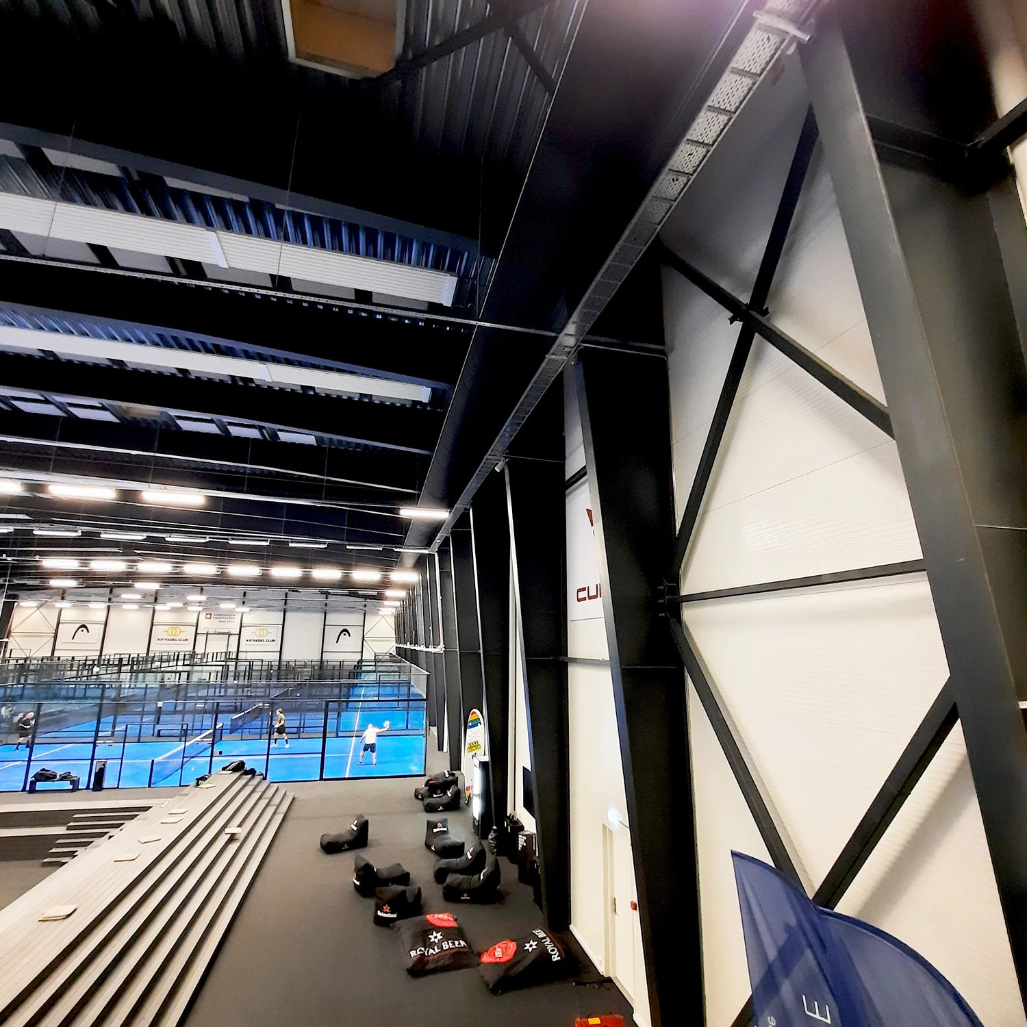 Padel er en pladskrævende sport med relativt få spillere på et stort areal. Det stiller særlige krav til ventilationen, da store rumvolumener skal ventileres effektivt – samtidig med at der ved turneringer skal tages højde for et øget antal tilskuere omkring opvisningsbanen. I spilleområdet er tekstilkanalerne strategisk placeret mellem banerne, hvor de fordeler luften via dyser til begge sider. Dermed tilføres alle baner frisk luft med en ensartet og effektiv luftfordeling, samtidig med at hallens maksimale loftshøjde bevares.