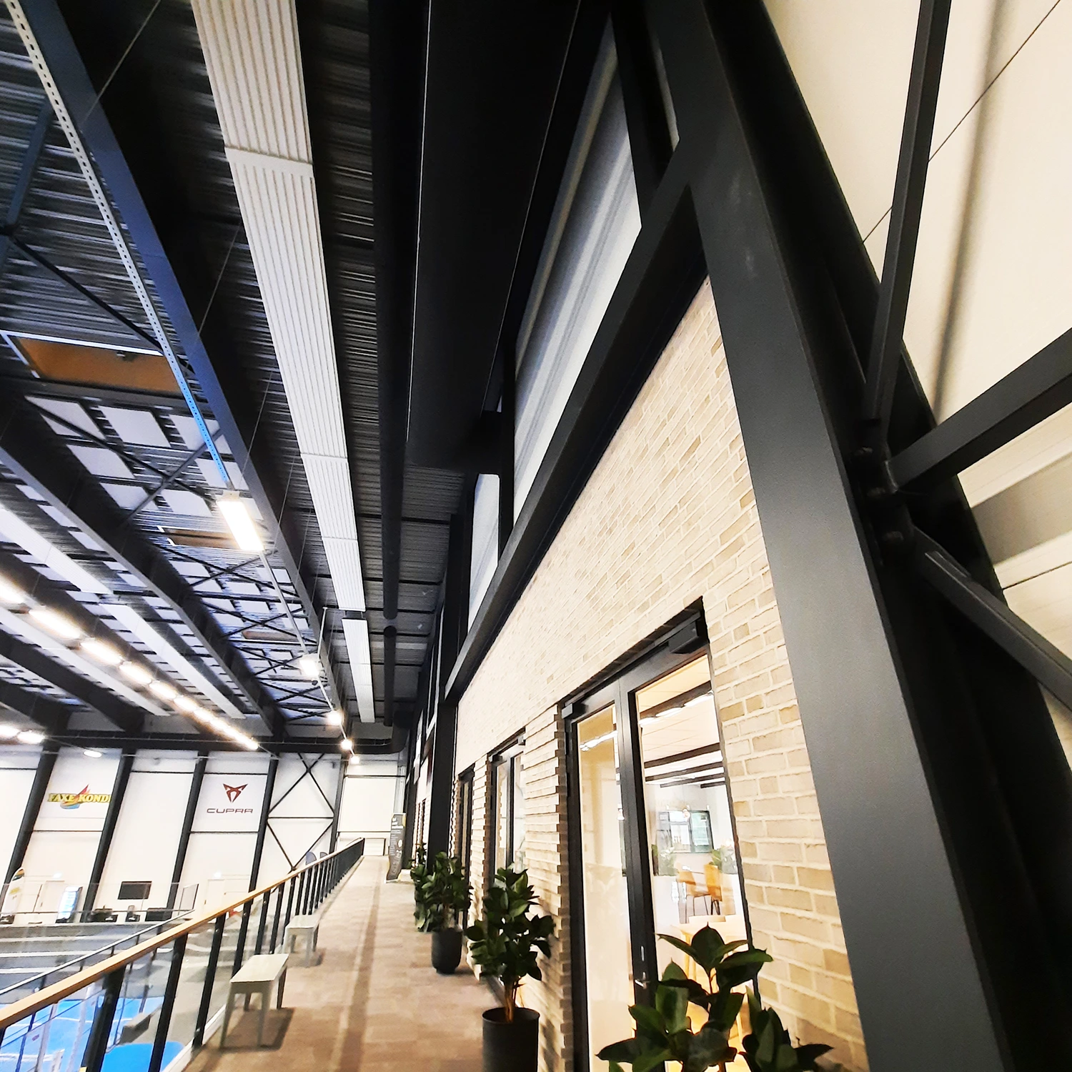 Løsningen skræddersys altid til hallens layout og behov i forhold til luftmængder, belastning og anvendelse. Samtidig tilpasses systemets design og farvevalg, så ventilationsløsningen integreres naturligt i hallens arkitektur og visuelle udtryk.