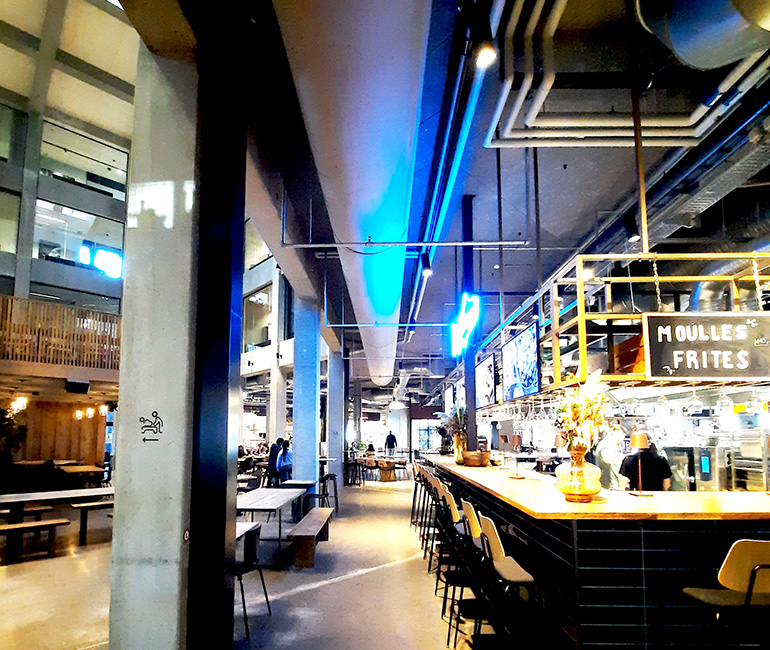Dårligt indeklima bliver hurtigt en udfordring i overfyldte rum. Når mange forskellige køkkener er i gang på samme tid, kan temperaturen svinge, og luften kan blive tung. Derfor handler et godt indeklima om at afbalancere rumtemperaturen med en jævn, trækfri og effektiv luftudskiftning. I Nicolinehus' markedshal sikrer tekstilbaseret ventilation et godt og behageligt indeklima for besøgende og personale. I tæt samarbejde med vores kunde Airteam har KE Fibertec installeret en flot ventilationsløsning til flere af bygningens forskellige spisesteder tilpasset arkitekturen og rummenes øvrige indretning.