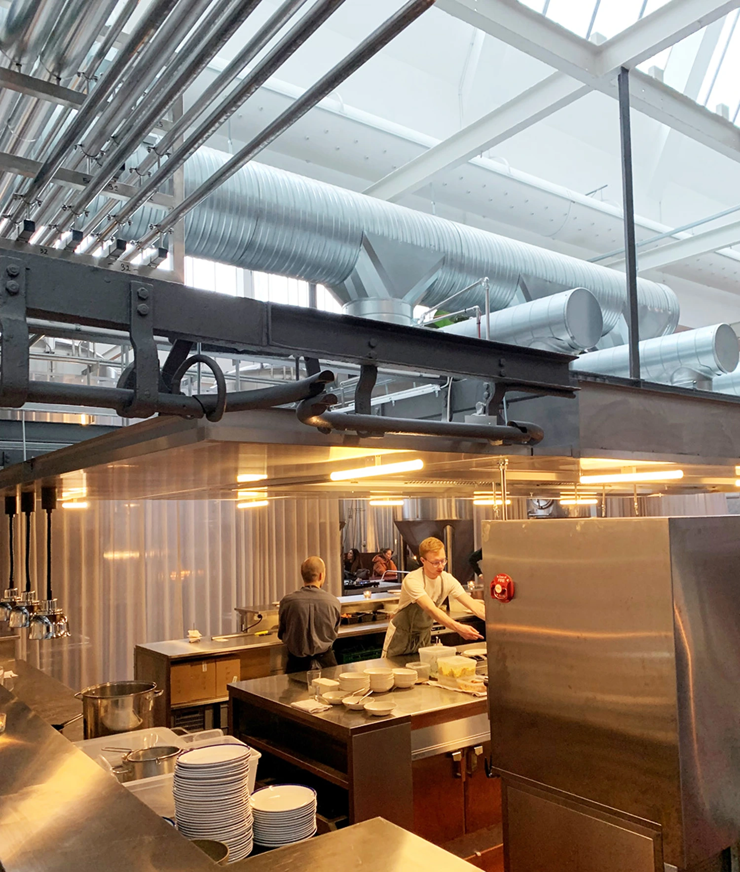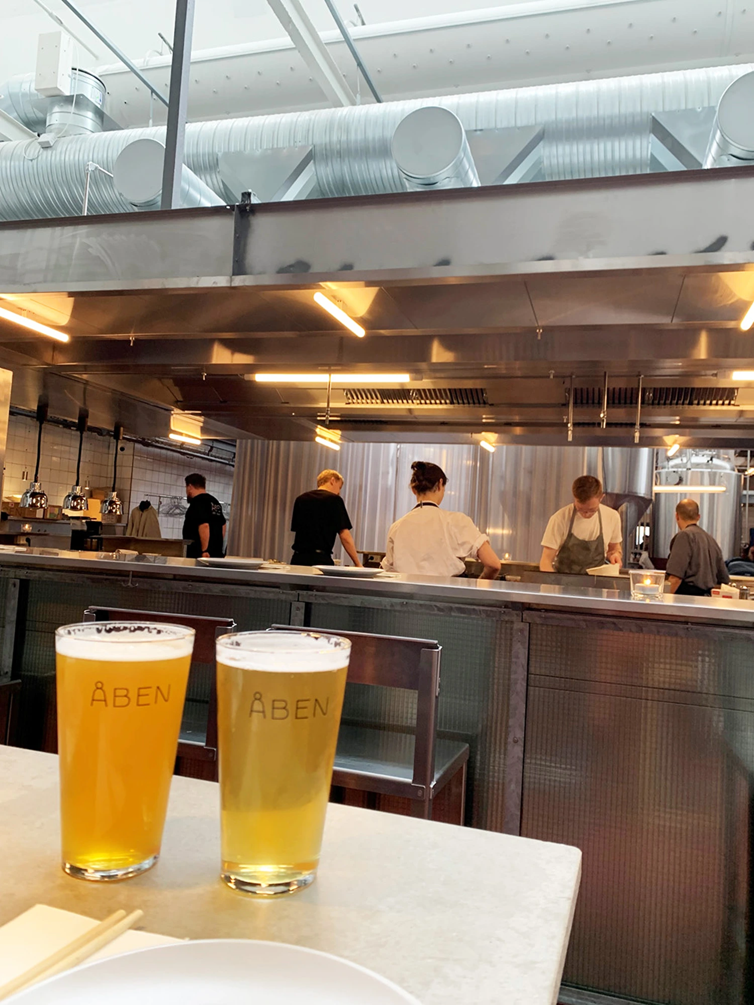 En restaurant med højt til loftet og flere rum stiller særlige krav til ventilationen. Det gør sig gældende hos spisestedet Åben i Kødbyen med rum med forskellig loftshøjde og varierende antal gætster. Med tekstilbaseret ventilation opnås en jævn og trækfri luftfordeling, som sikrer et behageligt indeklima for både gæster og personale – også i store og åbne områder.