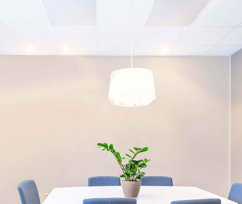 Da vi kan tilbyde løsningen i flere flotte Cradle to Cradle-godkendte farver, er FBS loftpaneler en fleksibel løsning, da loftpanelet kan designes til at passe ind i rummets design og den øvrige arkitektur.