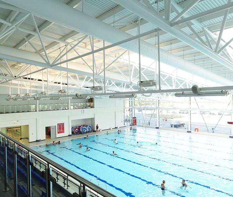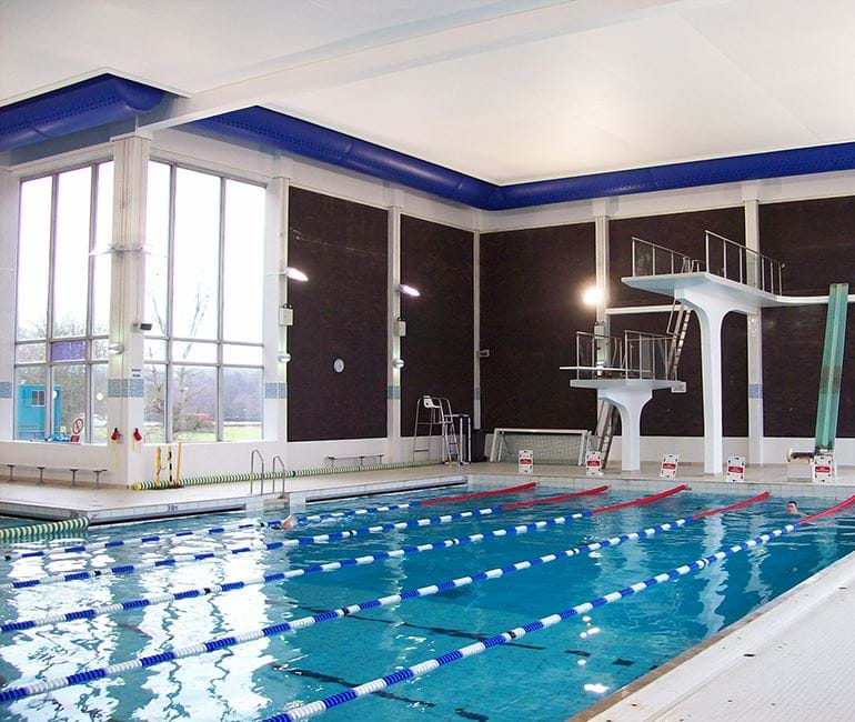 Med KE Fibertecs tekstilkanaler undgår man korrosion i kanaler og armaturer, kondens på lofter og vinduer samt problemer med stillestående "klorluft". Vores ingeniører har mange års erfaring i at dimensionere et luftfordelingssystem, der ikke alene er integreret i svømmehallens design, men også giver en energioptimal luftfordeling. Den ensartede temperatur og fugtfordeling reducerer energibehovet ved affugtning samtidig med at lave hastigheder over vandoverfladen nedsætter vandfordampningen.