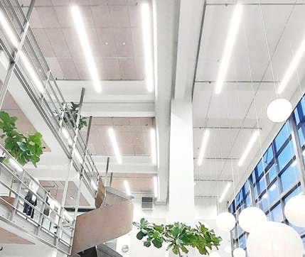Til den nye ventilationsløsning har KE Fibertec leverettekstilkanaler i de to stærke kvaliteter GreenWeave og MultiWeave i farven lysgrå, der passer godt ind i skolens øvrige indretning og interiør. I skolenskantine er der installeret en næsten 20 meter lang tekstilkanal fremstillet imaterialet MultiWeave og med flere dyser, der sikrer, at luften bliver fordeltensartet trods højden fra loft til gulv. Ved installationen af tekstilkanalerneer der både anvendt Safetrack- og D-Lite Alu-skinnesystem til ophæng, hvilkethar resulteret i et rigtigt godt resultat.