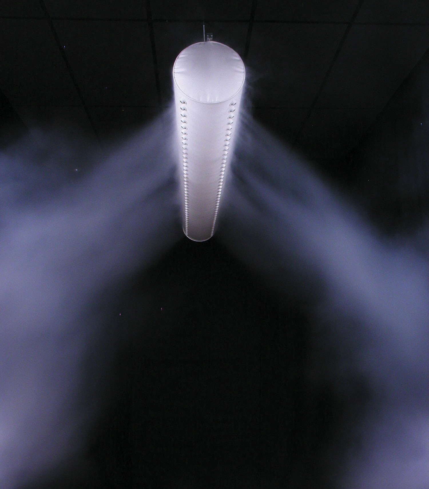 Hybride tekstilkanaler er, som nævnt på foregående side, med til at sprede en delluftmængde væk fra området under kanalen. Sammenlignet med et lavimpulssystem kan der derfor tilføres en større kølebelastning pr. løbende meter, uden at det medfører træk under kanalen.