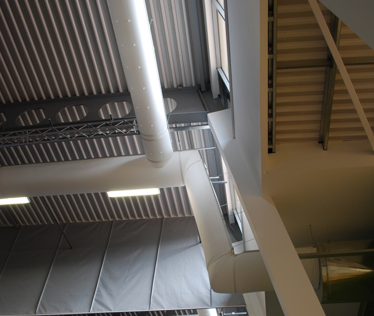 Um eine gleichmäßige Luftverteilung und somit ein gutes Raumklima zu erreichen wurden KE-DireJet Textilkanäle von KE Fibertec im sowohl Wasserpark und in der Sporthalle des Centers. Ø48 mm Düsen ermöglichen Wurflängen von über 20 Metern.