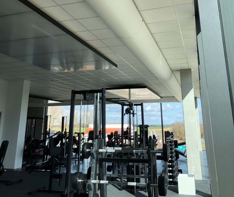 At the B43-1 gym in Heilsbronn in Germany they focus on sustainability and have therefore chosen KE Fibertec's CradleVent - the world's first Cradle two Cradle certified textile ducts for the ventilation of their state-of-the-art gym. Both half-round and quarter-round ducts of the KE-Low Impulse System and KE-Hybrid System have been installed.