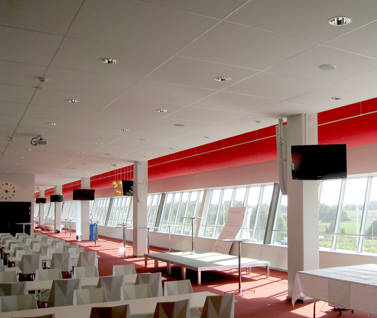 In 2011 Guldfågeln Arena had KE Inject Hybrid fabric ducts with nozzles and laser-cut holes installed. The duct is made of several sections with plastic nozzles to optimize air distribution. The red color matches the color of the Kalmar FF football club, the home team of the stadium.
