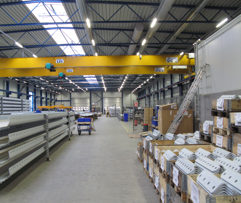 Producenten af vindmølletårne fik i 2013 installeret et tekstilbaseret ventilationsanlæg i en 100 meter lang produktionshal. De runde KE DireJet® tekstilkanaler med dyser sørger for en jævn og retningsbestemt luftfordeling uden trækgener. Det giver et godt indeklima og dermed et godt arbejdsmiljø for medarbejderne hos Andresen Towers.