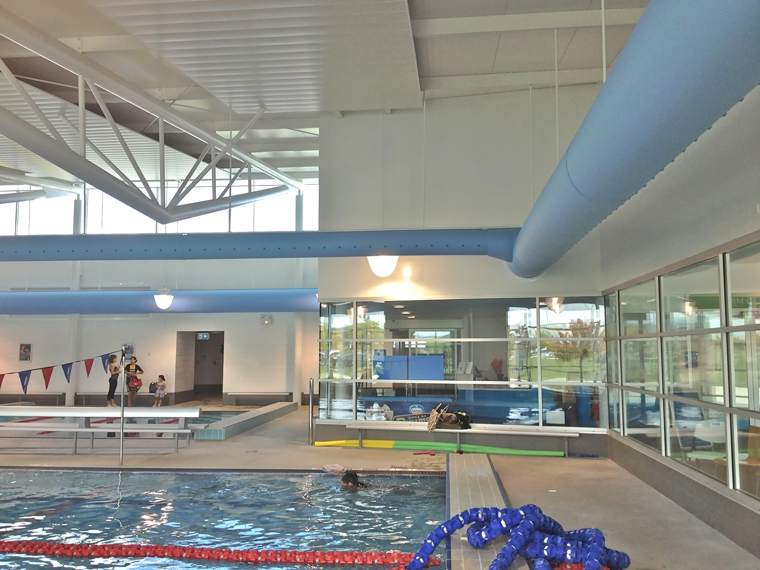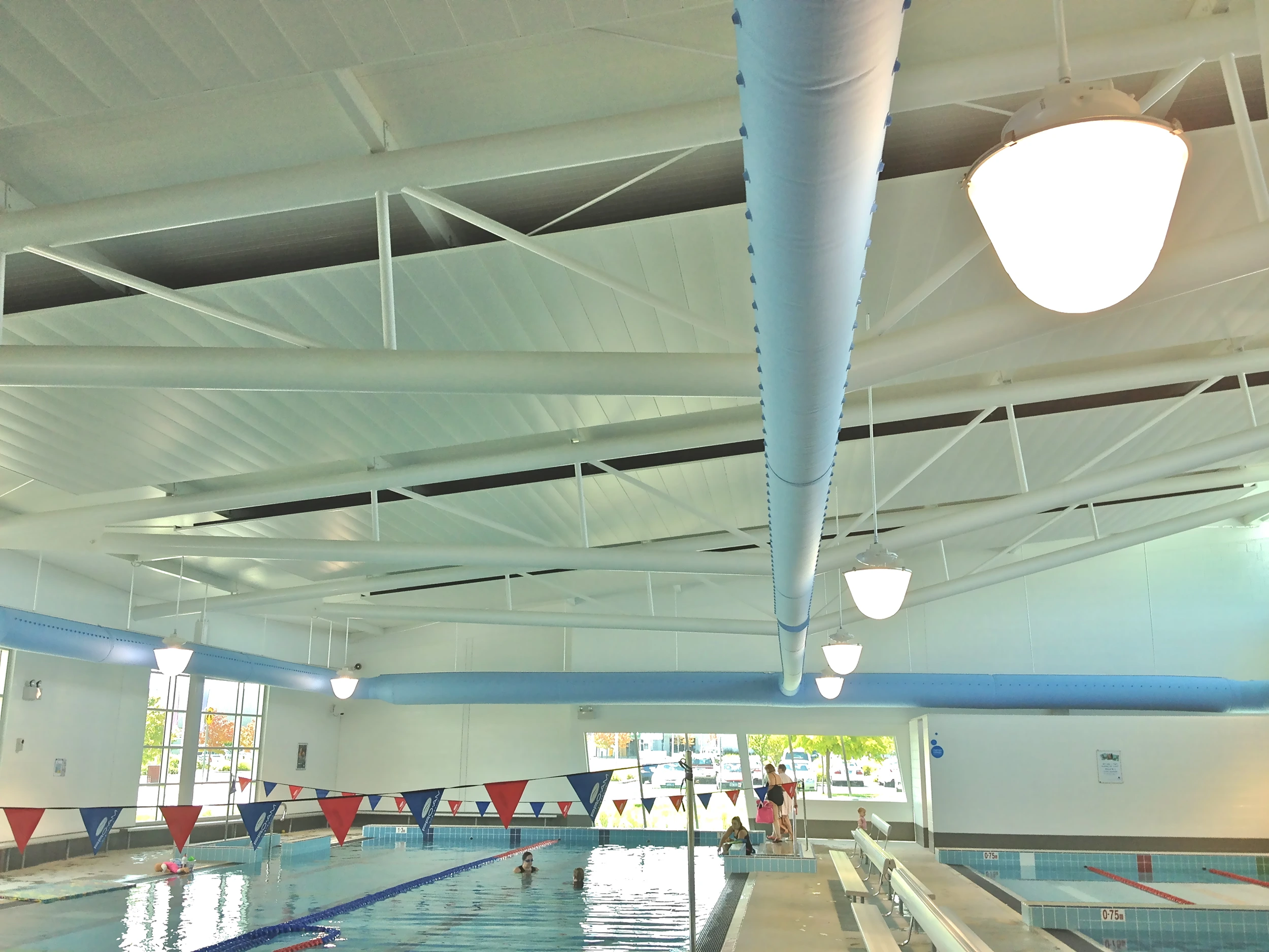 I Majura rekreasjonssenter sørger tekstilkanaler for at luften hele tiden erstattes med frisk luft, slik at besøkende opplever et behagelig inneklima.