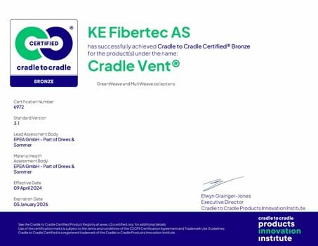 The certification documents the sustainability of the product and the fact that we take responsibility of its life cycle from Cradle to Cradle, ie. from production to recycling.