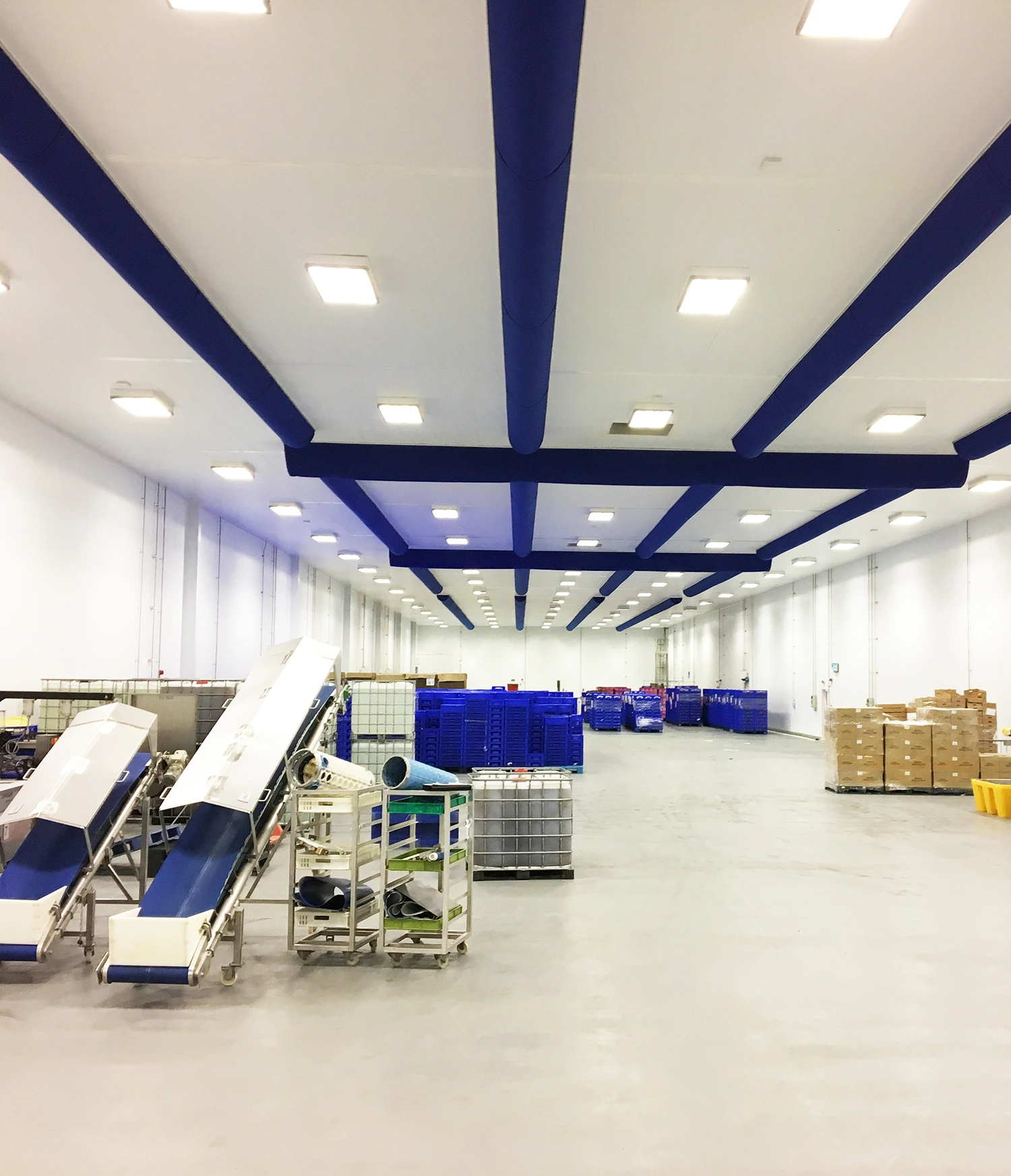 In a food warehouse, it is important that the air exchange ensures a stable temperature and appropriate humidity to maintain the quality and shelf life of the goods. Proper air exchange prevents the accumulation of moisture, condensation and undesirable odors, while minimizing the risk of mold and bacterial growth. The air change must also support a good working environment for employees by removing dust and pollution without creating drafts, and it should be energy efficient so that warehouse operations can be sustainably maintained over time.